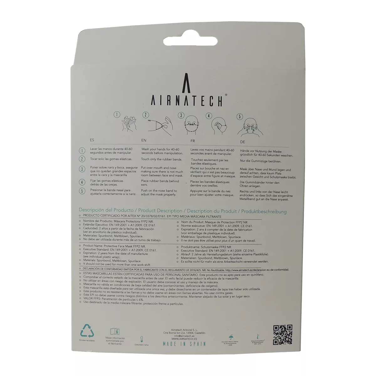 Historia de la marca: Airnatech es reconocida por su compromiso con la calidad y la innovación en productos de protección personal. Con años de experiencia, garantiza productos seguros y eficientes.