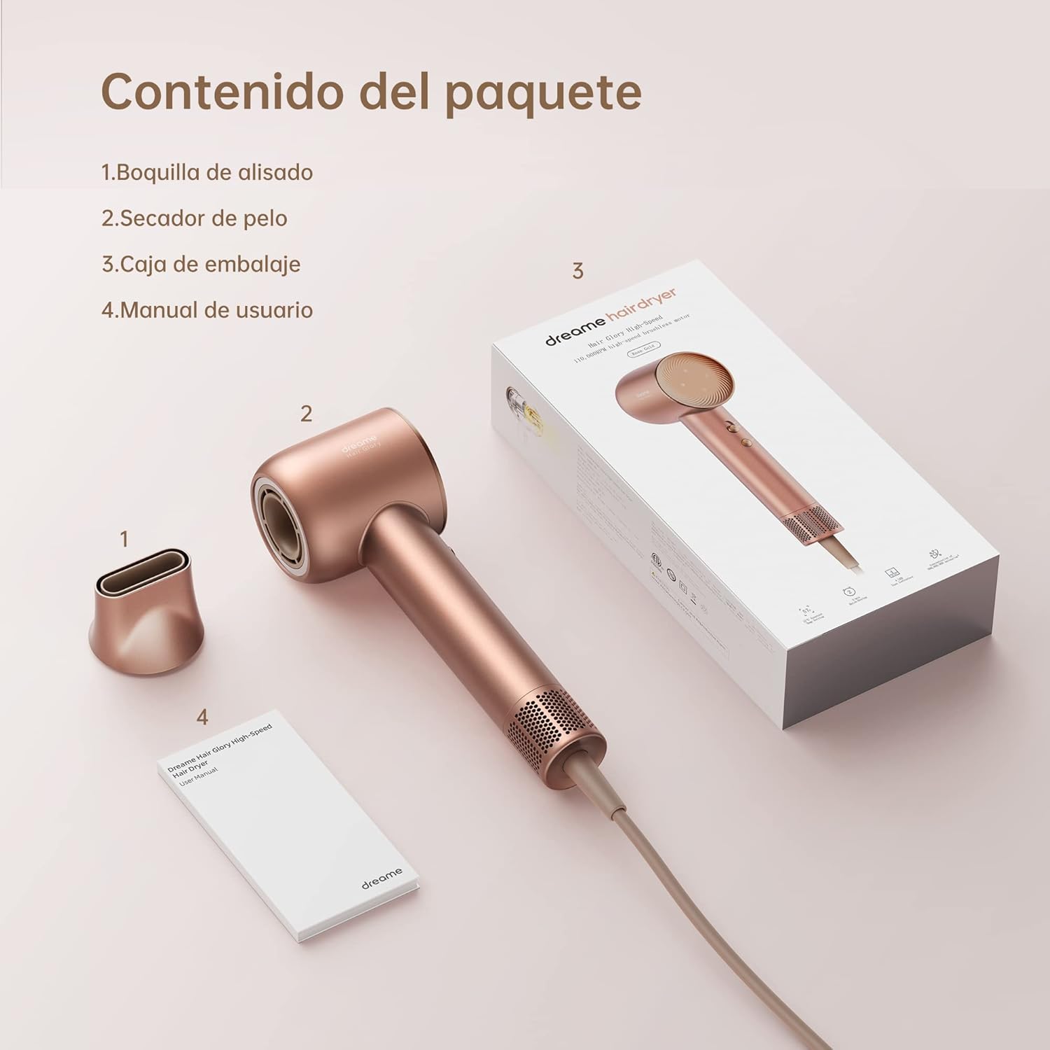 Descubre el Secador de Pelo Glory Rosa de Dreame, una joya de la tecnología en el mundo de la peluquería que combina estilo y funcionalidad. Este secador es ideal para quienes buscan un acabado profesional en casa, gracias a su innovador motor digital que asegura un secado rápido y eficiente.