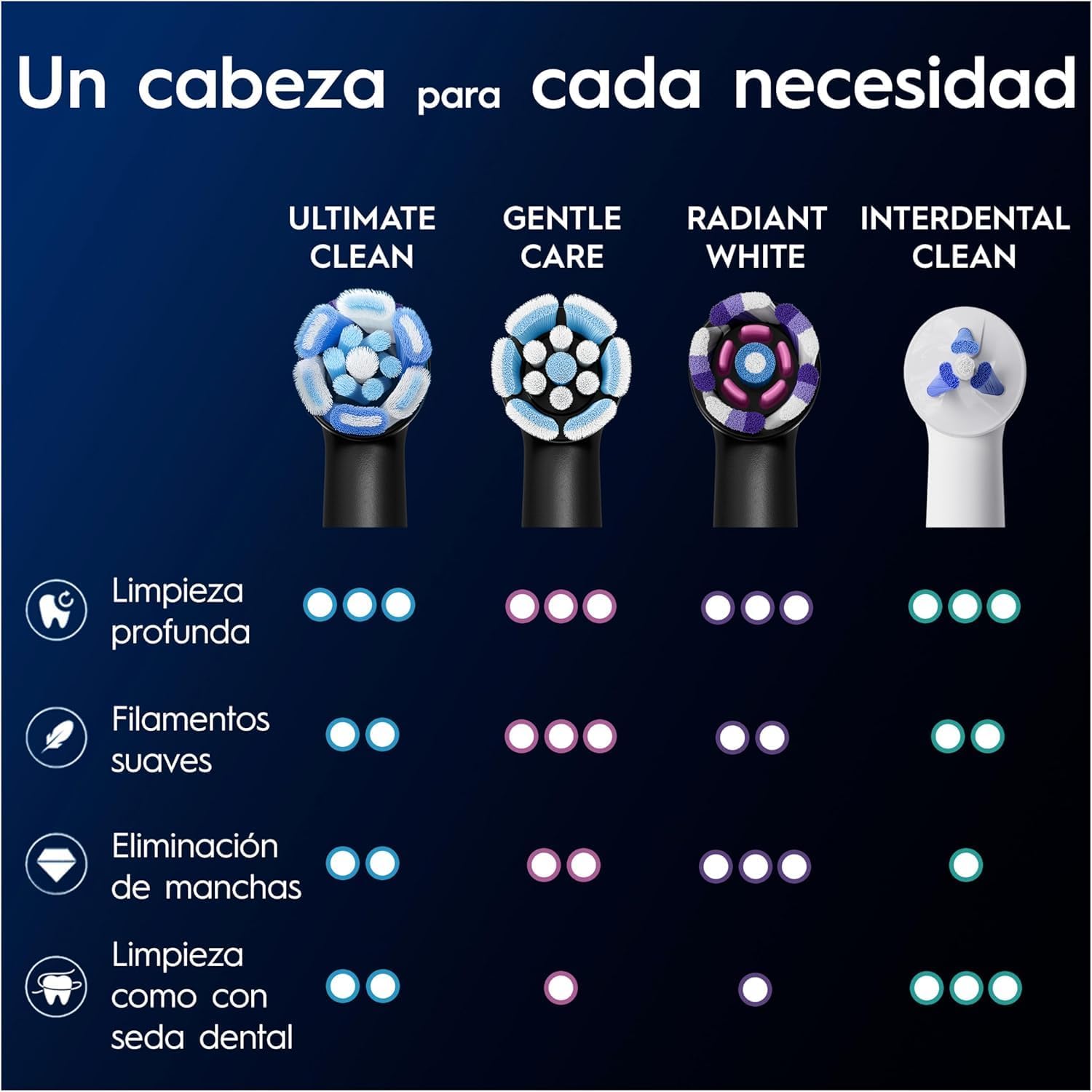 - Compatible con toda la línea de cepillos Oral-B iO